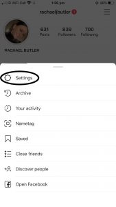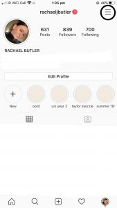 1 To start go onto your profile and click on the 3 lines at the top of your Instagram page.