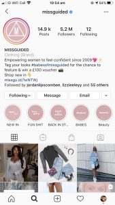 One of the best things about Instagram is how easy it is to interact with your followers and how much this will benefit your business. Replying to comments, liking photos your business has been tagged in, creating a hashtag for your followers to use. By doing any of these small things it will encourage your followers to want to engage with you, generating a bigger impact just from your account. As an example, fashion brand Missguided have created a hashtag #BabesOfMissguided which they have put in their Instagram bio stating if you share a photo using that hashtag you may get featured on their page and win £100. The level of interaction they have generated is insane, as the hashtag now has 279k posts attached to it. Their Instagram is also filled with photos taken by people who actually wear their clothes day to day, which makes it seem more genuine.